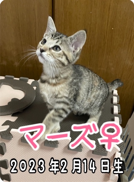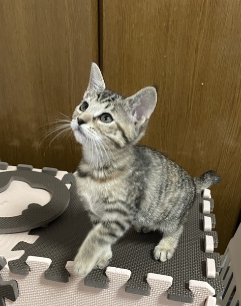 | 特徴(性格など) | キジトラ 薄めの色です 人慣れ⭕️ 元気いっぱいです。 尻尾が短めです。 ジェイ♂、エイファー♂と兄妹です。 優先順位→①3匹一緒に→②2匹一緒に→③1匹のみ |