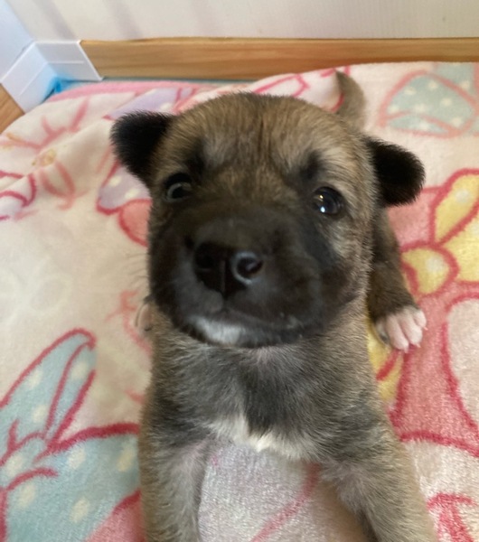 | 特徴(性格など) | 成長時18キロ前後の中型〜大型犬予想。 栃木県の野犬が多い場所より保護。 すくすく成長中です。 ほーちゃんはマイペース。 兄妹たちが遊んでてもぐーぐー寝ていたり。 1人でも楽しく遊んでいたり。 でもとても人が大好きめ甘えん坊さんです。 いつもしっぽフリフリ甘えています。 ちょっと天然入ってますが、とても覚えのいい頭の良い子です。 メンタルが安定しているので、家族形態を選ばずどんな環境にも対応できるタイプです。 しっかりとした大きめの中型犬になるの可能性があるので、信頼関係を築き、トレーニングして欲しい子です。 |