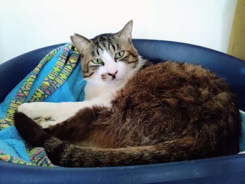 | 特徴(性格など) | ◆スプレー大臣くん 少しずつ人馴れしているキジ白くん ○神奈川県伊勢原市内の多頭飼育崩壊現場より保護しました。 ○推定5歳以上(2025年5月時点)のキジ白の男の子です。体重は5.62kg(2024年11月7日時点)です。 ○しっぽはまっすぐです。 ○全然人なれしていない子でしたが、最近になって少し歩み寄ってくれるようになりました。 ○お尻や背中あたりなら触らせてくれるようになりましたが、調子にのって顔周り触ろうとするとパンチされます。 ○スプレー大臣くんのペースに合わせて、少しずつ距離を縮めて頂けると幸いです。 ○名前はスプレーですが、スプレー(マーキング)しませんしきちんとおトイレを使えます。 ○FIP(猫伝染性腹膜炎)を発症しましたが、治療後寛解しています。 ★ワクチン1回済み、不妊手術済み。 ★猫エイズ、猫白血病ともに陰性。 ★FIP(猫伝染性腹膜炎)を発症しましたが、治療後寛解しています。 ☆単身のかたはご相談ください。 ★★お見合いを設定することも可能です。まずはお申込みください★★ |