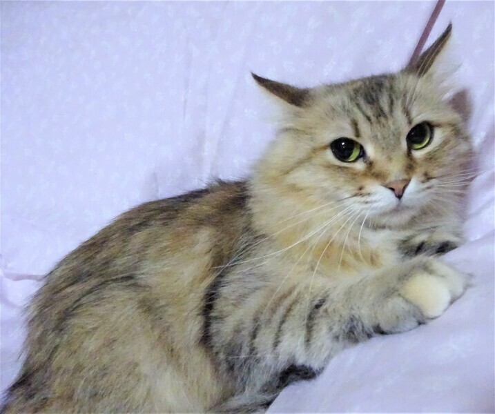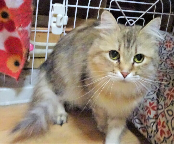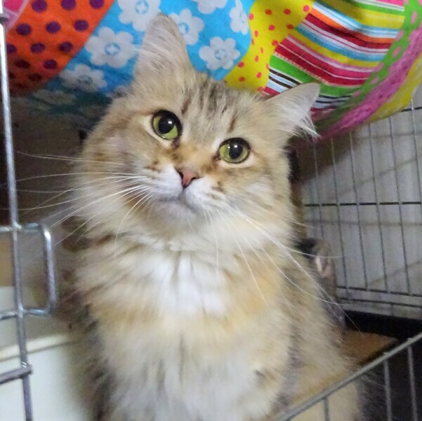 | 特徴(性格など) | 仮名: むぎちゃん(メス) 毛色: 明るい麦わら模様、長毛、純血サイベリアン 性格: 沢山の猫と一緒にいましたが、猫好きという訳ではなく、トラブルを起こさないようにつき合えますが、一緒に遊んだり、プロレスしたりは好きではないようです。 最初はケージを使えるか心配しましたが、むしろ自分だけの場所なので、落ち着いてくれました。 1匹が良いという訳ではないですが、猫数は少ないほうが良いようです。 人には威嚇なく、触ったり抱っこしたりは出来ますが、嫌な事をされると一応、威嚇したりします。 爪切りなどですが、爪切りさせてくれます。 ナデナデしたりブラッシングは好きなようで、ゴロンと横になって気持ち良さそうにしています。 自分からスリスリしては来ませんが、来る人も拒まない、マイペースに過ごしたいタイプのようです。 あまり小さいお子さんは好まないかもしれません。 落ち着いたご家族を希望します。 |