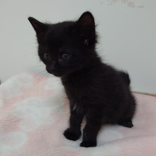 | 特徴(性格など) | 黒猫の女の子 兄弟猫に比べるとちょっとおっとりさん |