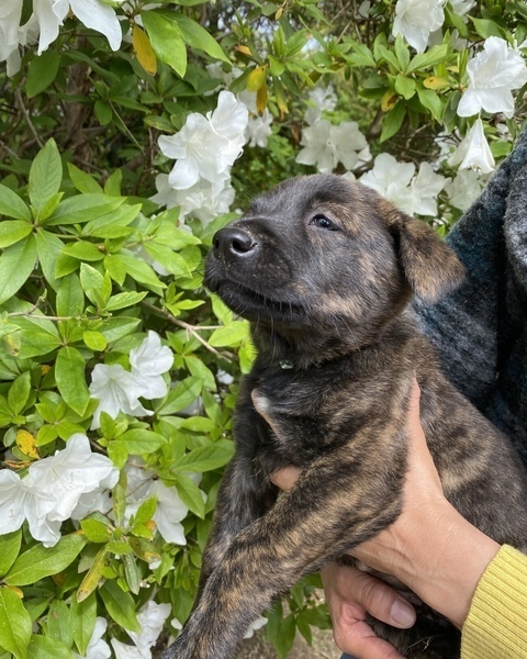 | 特徴(性格など) | 【特徴】 姉妹の中で1番大きいチャンドゥちゃん。 ぽんぽこりんのお腹は子犬らしく可愛いですが、なんと言っても母犬アンジュ譲りの短毛、虎柄がカッコいい! 虎柄の子は5姉妹中4匹いますが、1番茶色の被毛が多く出ています。 胸元にちょっとだけ白い毛があるのもチャームポイント。 将来はアンジュのようにカッコいいレディーになること間違いないです。 アンジュが大きいので(中型犬)チャンドゥちゃんも同じサイズに成長すると思われます ●タイガー5姉妹 ベビーヨーダ 募集番号: 453749 ティリー 募集番号: 453837 コッコ チェブラーシカ 【チャンドゥの様子】 Instagramにて更新しています。ハイライトにまとめてます。動画も更新しているので是非ご覧ください。 マイページの活動サイトURLから直接飛べます。 ID検索→hskwannyanrescue 【性格】 好奇心旺盛でとても人懐っこい子です。 |
