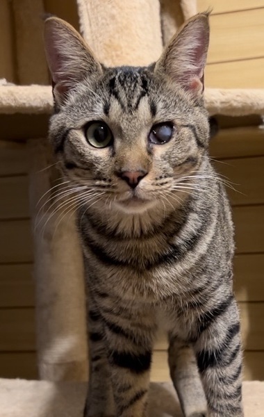 | 特徴(性格など) | ◆カゴゴーくん ナデナデ大好きスリゴロなキジトラくん ○鹿児島県内の多頭飼育崩壊現場より保護しました。 ○推定2-3歳くらい(2024年10月時点)のキジトラの男の子です。体重は3.69kg(2024年9月22日時点)です。 ○尻尾は長めで、先っぽが少し曲がっています。 ○左目が白濁していますが、日常生活には支障ありません。 ○撫で撫でが大好きなスリゴロ君です。 ○可愛い声で甘えてきます。 ◯とても甘えん坊なため、撫でてほしくてテンションが上がると、強めの甘噛み癖があります。 ◯小さいお子様がいるご家庭は注意が必要です。 ○YouTubeにも動画を上げています。こちらもご覧下さい。 「カゴゴー」 https://youtu.be/0VhnLz6sO0Q ★ワクチン済み、不妊手術済み。 ★猫エイズ、猫白血病ともに陰性。 ★左目が白濁していますが、日常生活には支障ありません。 ☆単身のかたはご相談ください。 ★★お見合いを設定することも可能です。まずはお申込みください★★ |