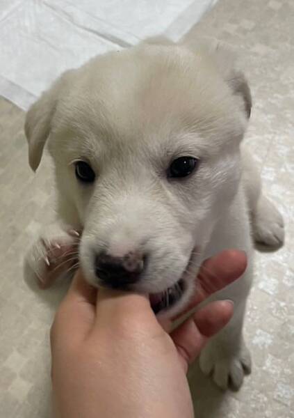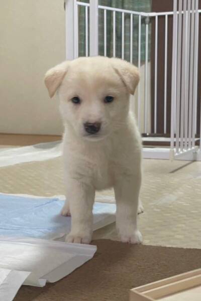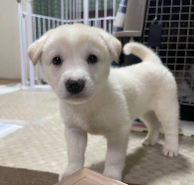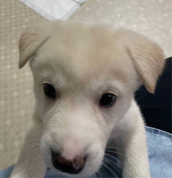 | 特徴(性格など) | ◆そよちゃん 元気いっぱい白毛のやんちゃ娘 ●以下の条件を満たすご家庭を希望します。ご了承の上で応募をご検討下さい。 ◆日中のお世話やお散歩が高齢者でないご家庭 ◆お留守番時間が少なめなご家庭 ◆体重15~20キロ、体長60cm程度、体高45cm程度に成長する中型犬の飼育が可能なご家庭 ◆逸走防止対策が出来るかた。万が一逸走した場合あらゆる手段を講じて捜索出来るかた ○香川県内で、4頭の兄妹で保護されました。 ○生後1ヶ月半位(2023.4中旬時点)の仔犬ですが、元気にすくすくと育っています。 ○体重は2.4㎏(2023.4時点) ○元気いっぱいで、とても活発に動きます。 ○食欲もあります。 ○トイレは練習中です。 ○後ろ姿は、お尻が真ん丸でとてもかわいい女の子です。 ○全身は白毛で、お鼻は黒いですが少し白が入っています。耳とおでこにはクリーム色の毛が見られます。 ★★★5/13(土)「HELLO LOVE DOGS保護犬里親会」に出場予定。詳しくはお問い合わせください。★★★ ★ワクチン 済み ★避妊手術は成長と体調をみて実施する予定です。 ★血液検査の結果、赤血球値が低いが、栄養状態が良くなってくれば、正常値になると思われるとのことです。 |