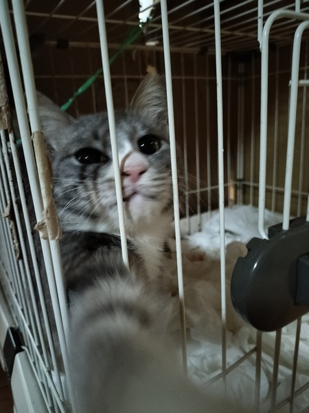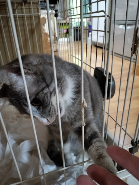 | 特徴(性格など) | 犬用平ケージで暮らしています。トイレも常設の水もありません? ケージの隙間から手を伸ばして遊ぼう遊ぼうとアピールしてくる人懐っこいコです。 頭が傾き、歩行がフラフラする障害があります。 |