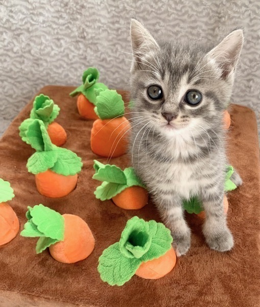| 特徴(性格など) | 【仮名】スフレちゃん 【性格】くっきりアイラインなスフレちゃん♪ グレーキジトラ&シルキータッチの毛並みエメラルドブルーの大きなおメメも 全てが将来有望なにゃんこです♪ フンワリ系でアザトさが売りです(笑) 動きもトロくて思わず守りたくなっちゃいますよ♪ 自分がカワイイの分かってるヤツです(笑) よく食べよく遊びよく寝て元気にスクスク成長中なので ネコ初のパリコレを目指します(笑) 遊びの中で色々と学習中なので兄妹か同世代とのペアでのお迎えのみ ご希望を受け付けます♪ ※まだ小さい為、お留守番は4時間以内の方のみお願い致します。 ※1ピキ譲渡不可 |