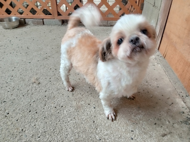 | 特徴(性格など) | シーズーらしい大人しく人懐こい子です。 反応すると(嬉しい時)耳がピョンっと立って可愛らしいです。 ほとんど吠えません。しかし、食事前は大騒ぎします。 室内トイレや散歩はトレーニングが必要です。 留守番、就寝中はケージで大人しくしています。 他の子とも仲良くできます。 慣れていないのか、やや抱っこが苦手なようです。 シーズーに多い皮膚・眼・呼吸器疾患は今のところ見受けられません。 |
