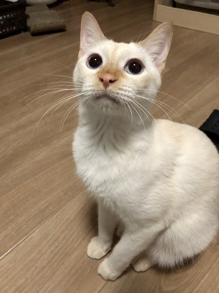 | 特徴(性格など) | 生後1ヶ月の時は白でしたが成長につれて茶色がでてきました☆(特にお顔や耳、しっぽ) 目の色が宝石のように美しく、とっても魅力的です✨我が道をいく王子タイプでクールな子ですが呼ぶとしっぽうをぱたぱたさせてきてくれます? 頭なでなでが好きなのでよく催促しにきます☺️ 人もネコもダイスキっ子です! |