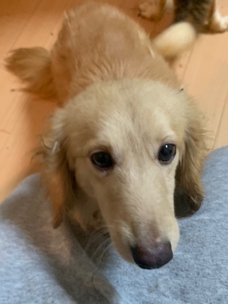 | 特徴(性格など) | 色はクリーム 見た目はダックスフンドですが 体は少し大きいと思います。 大人しい子で、甘えんぼうです! |