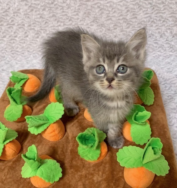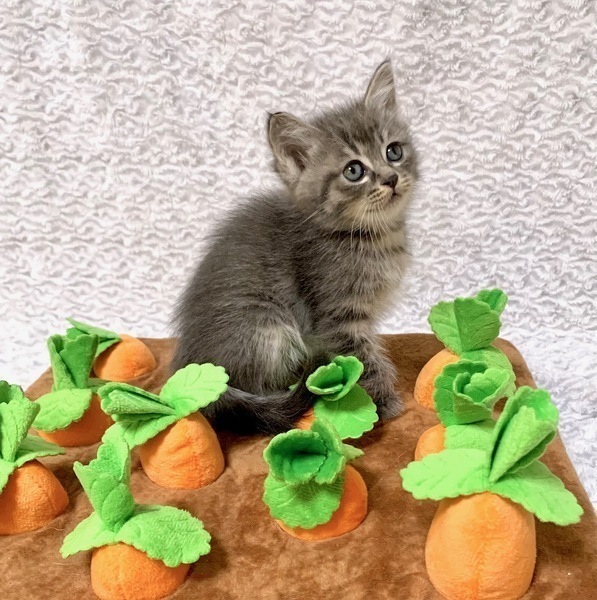 | 特徴(性格など) | 【仮名】キャンディちゃん 【性格】しっかりアイラインなキャンディちゃん♪ グレーキジトラ&シルキータッチの毛並み エメラルドブルーの大きなおメメも兄妹のスフレちゃんと瓜二つ(笑) このコはとにかくポンヤリしててお顔もエキゾチック系の ペチャ鼻&ギョロ目なんで余計に表情から読み取りにくい(笑) まるで綿菓子みたいにフワフワしたにゃんこです♪ でもよく食べよく遊びよく寝て元気にスクスク成長中なので 将来どんなコになるのか楽しみでなりませんね♪ 遊びの中で色々と学習中なので兄妹か同世代とのペアでのお迎えのみ ご希望を受け付けます♪ ※まだ小さい為、お留守番は4時間以内の方のみお願い致します。 ※1ピキ譲渡不可 |