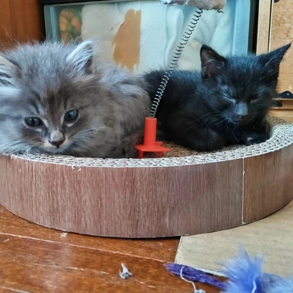 | 特徴(性格など) | 少し臆病で人が部屋に入った時は隠れていますがオモチャを振ると出て来て遊びだしたら全力投球。 飛んで跳ねて転がって姉妹猫や仲間たちと疲れるまで遊んでいます。 最近はちゅーるも手から食べてくれます。 お留守番が無いか短いお家。 姉妹一緒のご縁を優先させていただきたいです。 |