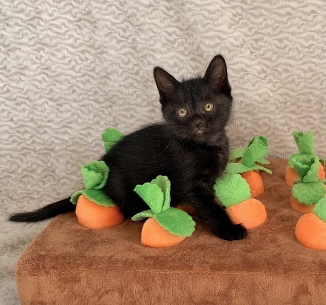 | 特徴(性格など) | 【仮名】マックくん 【性格】みんな大好き黒猫のマックくん♪ 相変わらず黒猫は撮影ムズッ! 実際は100倍カワイイですから! 4兄弟イチ気が強く、チビッコいくせにまだシャーコラ言ってます(泣) でも楽しくなっちゃうとウッカリ人に乗ってしまったり おバカなのかわりと容易い感じです(笑) よく食べよく遊びよく寝て元気にスクスク成長中なので あとはチャームポイントの胸のツキノワグマ模様が 消えてしまわない事を祈ります(笑) 遊びの中で色々と学習中なので兄妹か同世代とのペアでのお迎えのみ ご希望を受け付けます♪ ※まだ小さい為、お留守番は5時間以内の方のみお願い致します。 ※1ピキ譲渡不可 |