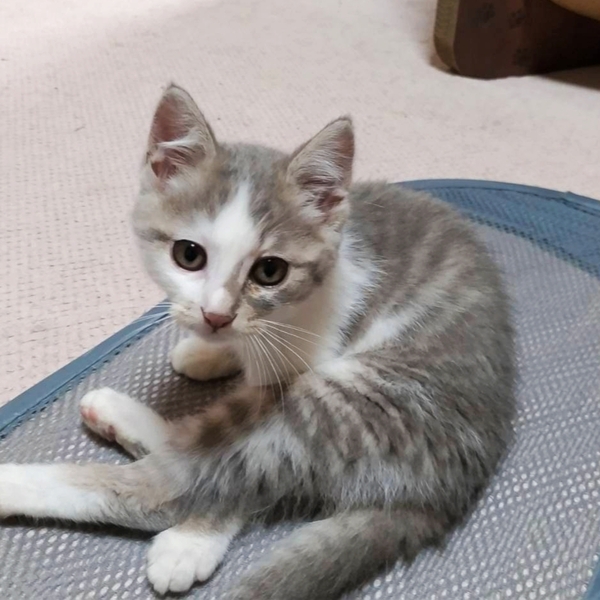 | 特徴(性格など) | グレーキジの銀河くんは5兄妹の中で唯一の短毛猫さんです。 兄妹の中でいちばん警戒心が強く隠れてしまいますがオモチャやご飯のときは遅れない!とばかりに出て来て楽しいと美味しい輪の中に入って来ます。 体重がいちばん重いので筋力や体力もあり疲れ知らずで遊んでいます。 兄弟猫のちゃいくんと仲良しなのでふたり一緒のご縁を探しています。 お留守番が無いか短いお家。 まだ子猫なので健康管理をしっかりしてくださる方。 安全に暮らせるように脱走対策、お部屋の片付けなどを徹底してくださる方。 玄関や窓まわりリビングなど対策が必要な場所の写真を見せていただけるとお話がしやすいです。 |