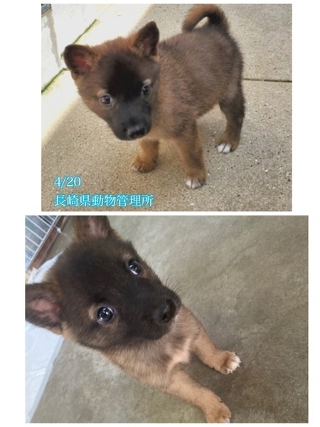 | 里親募集する理由 | 〜5/15追記〜 黒い男の子譲渡になりました。 あと茶色の男の子ですฅ•ﻌ•ฅ ♡まだ生後2ヶ月位のよちよち歩き。 とっても可愛い雑種の子犬兄弟ですฅ•ﻌ•ฅ 人と接した経験が無く、撫でられたり触れ合ったり人からの当たり前の愛情、優しさを知らないまま、お腹を空かせて寒いお外で必死に生きてきました。突然親犬と離れ離れになり連れて来られて収容され、どんなに寂しく心細いか。 一日も早く温かい家庭の中で過ごさせてあげたいです。 ⭐️県外、遠方の方でも譲渡の条件が合い、良縁に恵まれましたら里親になっていただけますのでどうぞ宜しくお願い致します! ※ ※ ※ 長くなりますがm(_ _)m 犬猫と里親様の幸せの為にも、募集内容を熟読し、必ずご家族とよく相談をされた上、ご家族全員の賛同を得られてからのお問い合わせ をお願い申し上げます※※※ ⭐️ 外飼いでは無く、室内飼育で家族の一員として迎えて下さる方、「引き渡し方法」のところにあります【①〜のアンケート】にご回答と、どちらの子をご希望か、と共に、お問い合わせを頂けますようお願い申し上げます♡ ★No.15941 黒の男の子 ★No.15942 茶色男の子 長崎県島原市有明町内にて保護されたのちに保健所収容、現在は長崎県動物管理所へ移送されてきています。この地域は野犬が多く、周りに民家の少ない山の中です( ; ; ) 優しい職員さん方が大丈夫だよ、幸せになれます様にと毎日触れ合い、声掛けしながら一生懸命にお世話してくださっています(^^) 無理もありませんが収容当初はかなり怯えていてうずくまったまま動きませんでした。 今はすっかり馴れて、抱っこして〜とよじ登ってきたり、呼んだら尻尾フリフリ走って来るまでになっていますฅ•ﻌ•ฅ ワチャワチャしていて仔犬らしさ全開(^^) 愛嬌たっぷりラブリーの甘えん坊さんワンコ達です♡ 栄養不良に不衛生な環境からの保護・収容で、ノミダニがついていました(><) 痩せていて毛並み毛艶も悪く栄養状態や健康状態がいいとは言い切れません。 体調も急変しやすいかと思われます(>_<) 何か病気や障害が有るのか、無いのかも分かりません。 今後、体調の急変などもあり得ることを念頭に置き、譲渡後は早急な病院受診が可能なご家庭を希望しておりますm(_ _)m 現在は1日に3回、ご寄付で送って頂いた栄養価の高い良質な仔犬用のドライフード(ネイティブドッグフードパピー)をミルクでふやかして食べています。 まだまだ幼い為、長時間のお留守番は出来ません。特に子犬は寂しくて夜鳴きする子も多いです。 ※今後の健康な成長の為に、良質なフードを与える事が可能な方。 ※大事な社会化期で、これから甘噛み期やトイレの躾など、何かと手がかかりますが育てる自信と覚悟のある方。 ※子犬は思っていた以上にお世話が大変だと言われる方が多く、排泄も頻回で甘噛み期もあります。カミカミされると痛いです! ご苦労もかなり多いと思います( ; ; ) 日に日に大きくなっていきますし換毛期は抜け毛もわんさか、日々のブラッシングやら爪切りも必要です。 本当に大変ですが!m(_ _)m 充分ご理解頂ける方m(_ _)m まだお散歩デビューは出来ませんが今後成長していく中で、急な物音や知らない場所にビックリして怖がって、咄嗟に逃げよう、逃げようとする可能性も大いにあり得る事です。 その時の力、引きの強さも想定し、急な走り出しや高い塀や壁・柵の飛び越え・急な方向転換や首を振って後退りからの首輪抜け、胴輪抜けにはご用心です! 呼び戻しも教えなければなりませんし、パニックになったワンちゃんには呼び戻しもききません、もし逃がしてしまったらピューっと走って逃げて行ってしまう可能性大です!(>_<) もし逃がしたらもう捕まえられない!というようにお考えくださいm(_ _)m ※繰り返しになりますがどんな子であっても、慣れてきても常に、脱走・逃走には充分な注意と最大限の配慮(W首輪、胴輪にWリード)迷子札の装着をお願いしております m(_ _)m 適切に制御し、躾や毎日朝晩のお散歩、運動の時間をしっかり取ることの出来る、沢山優しく触れ合って頂ける方、先ずはじっくりと時間を費やし触れ合い、信頼関係を作っていく事の出来るご家庭を希望しております。 ♡人間が焦らずにゆっくり見守りながら、愛情を持って接ししっかりとお散歩にも連れ出して行けば、幼いこの子達はきっと新しい家庭に馴染んでいける、優しい家族に囲まれて思い切り甘えて遊んでほしいのだと思います。 当分の間はかなり手がかかり大変かと思いますがまだ子犬ですし、広い心で、例え長期戦でもドンとこい^_^と仰って頂ける方、愛くるしいこの子達をこの先も尻尾フリフリ♫ニコニコの笑顔にしてくださる方、いらっしゃいませんか? どうぞ宜しくお願い申し上げますm(_ _)m https://er-animal.jp/pepy/69259 ⭐️必ず室内飼育で、譲渡後速やかに病院受診、健康診断、2回目3回目の混合ワクチン、生後4〜6ヶ月頃を目処に去勢手術をする事が可能なご