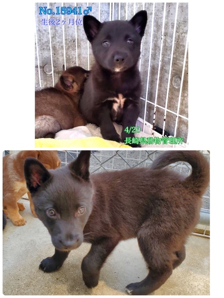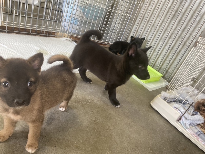 | 特徴(性格など) | 〜5/15追記〜 黒い男の子譲渡になりました。 あと茶色の男の子ですฅ•ﻌ•ฅ ♡まだ生後2ヶ月位のよちよち歩き 野良ちゃんが生んだとっても可愛い雑種の子犬兄弟ですฅ•ﻌ•ฅ 突然親犬と離れ離れになり連れて来られて収容され、どんなに寂しく心細いか。 一日も早く温かい家庭の中で過ごさせてあげたいです。 ⭐️ 外飼いでは無く、室内飼育で家族の一員として迎えて下さる方、「引き渡し方法」のところにあります【①〜のアンケート】にご回答と、No.どちらの子をご希望か、と共に、お問い合わせを頂けますようお願い申し上げます♡ ★No.15941 黒の男の子 ★No.15942 茶色男の子 優しい職員さん方が大丈夫だよ、幸せになれます様にと毎日触れ合い、声掛けしながら一生懸命にお世話してくださっています(^^) 無理もありませんが収容当初はかなり怯えていてうずくまったまま動きませんでした。 今はすっかり馴れて、抱っこして〜とよじ登ってきたり、呼んだら尻尾フリフリ走って来るまでになっていますฅ•ﻌ•ฅ ワチャワチャしていて仔犬らしさ全開(^^) 愛嬌たっぷりラブリーの甘えん坊さんワンコ達です♡ 栄養不良に不衛生な環境からの保護・収容でノミダニがついていました(><) 痩せていて毛並み毛艶も悪く栄養状態や健康状態がいいとは言い切れません。 体調も急変しやすいかと思われます(>_<) 何か病気や障害が有るのか、無いのか?も分かりません。 今後、体調の急変などもあり得ることを念頭に置き、譲渡後は早急な病院受診が可能なご家庭を希望しておりますm(_ _)m 現在は1日に3回、ご寄付で送って頂いた栄養価の高い良質な仔犬用のドライフード(ネイティブドッグフードパピー)をミルクでふやかして食べています。 まだまだ幼い為、長時間のお留守番は出来ません。特に子犬は不安や寂しさから夜鳴きする子が多いです。 ♡今後の健康な成長の為にきちんとした良質なフードを与える事が可能な方、 そして大事な社会化期でこれから甘噛みやトイレの躾など、本当に本当に!何かと手がかかりますが育てる自信と覚悟のある方、 出来れば中型〜大型犬の飼育経験のある方が望ましいです♡ ※子犬は思っていた以上にお世話が大変だと言われる方が多く、排泄も頻回で甘噛み期もあります。カミカミされると痛いです! ご苦労もかなり多いと思います。 日に日に大きくなっていきますし換毛期は抜け毛もわんさか、日々のブラッシングやら爪切りも必要です(^^) 本当に大変ですがm(_ _)m! 充分ご理解頂ける方m(_ _)m ♡まだお散歩デビューは出来ませんが、今後成長していく中で、急な物音や知らない場所にビックリして怖がって、咄嗟に逃げよう、逃げようとする可能性も大いにあり得る事です。 その時の力、引きの強さも想定し、急な走り出しや高い塀や壁・柵の飛び越え・急な方向転換や首を振って後退りからの首輪抜け、胴輪抜けにはご用心です! 呼び戻しも教えなければなりませんし、パニックになったワンちゃんには呼び戻しもききません、もし逃がしてしまったらピューっと走って逃げて行ってしまう可能性大です!(>_<) もし逃がしたらもう捕まえられない!!というようにお考えくださいm(_ _)m ※繰り返しになりますがどんな子であっても、慣れてきても、常に、脱走・逃走には充分な注意と最大限の配慮(W首輪、胴輪にWリード)と迷子札装着をお願いしております m(_ _)m 適切に制御し、躾や毎日朝晩のお散歩、運動の時間をしっかり取ることの出来る、沢山優しく触れ合って頂ける方、先ずはじっくりと時間を費やし触れ合い、信頼関係を作っていく事の出来るご家庭を希望しております。 ♡人間が焦らずにゆっくり見守りながら、愛情を持って接ししっかりとお散歩にも連れ出して行けば、この子達はきっと新しい家庭に馴染んでいける、優しい家族に囲まれて思い切り甘えて遊んでほしいのだと思います。 当分の間はかなり手がかかり大変かと思いますがまだ子犬ですし、広い心で、例え長期戦でもドンとこい^_^と仰って頂ける方、 愛くるしいこの子達を尻尾フリフリ♫ニコニコの笑顔にしてくださる方、いらっしゃいませんか? どうぞ宜しくお願い申し上げますm(_ _)m ⭐️必ず室内飼育で、譲渡後速やかに病院受診、健康診断、2回目3回目の混合ワクチン、生後4〜6ヶ月頃を目処に去勢手術をする事が可能なご家庭。 ⭐️まだまだ幼い為長時間のお留守番は出来ません。なるべくお留守番の少ない(4時間以内)沢山優しくスキンシップやコミュニケーションで触れ合っていただけるご家庭。 ストレスが溜まらぬよう、成長後の運動量もしっかり確保出来るご家庭m(_ _)m ⭐️トイレの躾は1からとなります。 まだ子犬なので躾は入りやすいと思われます。現在ペットシートでトイレの練習中(^^) 最初は何かと手がかかり大変ですが(トイレスペースやペットシート、マナーベルト、新聞紙を用意など)覚悟と根気・理解で受け入れて下さる方m(_ _)m ⭐️出来れば中型〜大型犬の飼育経験が
