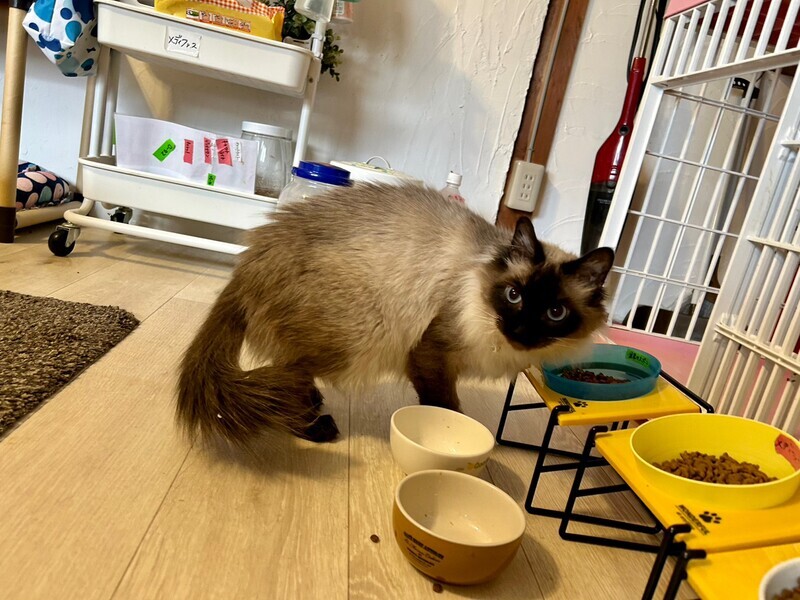 | 特徴(性格など) | ふわふわの柔らかい毛並みに 長いしっぽがご自慢ボディ! 吸い込まれるような碧い瞳がチャームポイント! 少し怖がりだけど これは好き、これは嫌いがはっきりしているとても賢いお嬢様タイプのシャム猫らしいコです。 葵ちゃんの日常、様子はインスタグラム@enn1105でも見られます! このコの良さを実際に会いに来ていただいて感じてください! 毎週末、祝日のEnn結び会でお待ちしております! 多頭飼いの場合は相性確認が必要です。 初めて猫を飼われる方も大歓迎! お迎えの際には勿論、スタッフが丁寧にアドバイスさせていただきます。 |