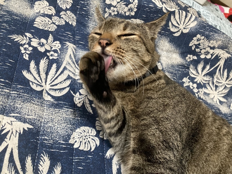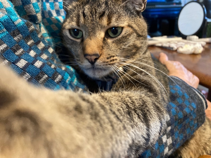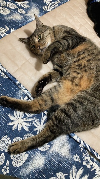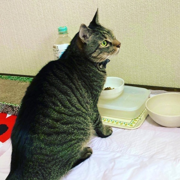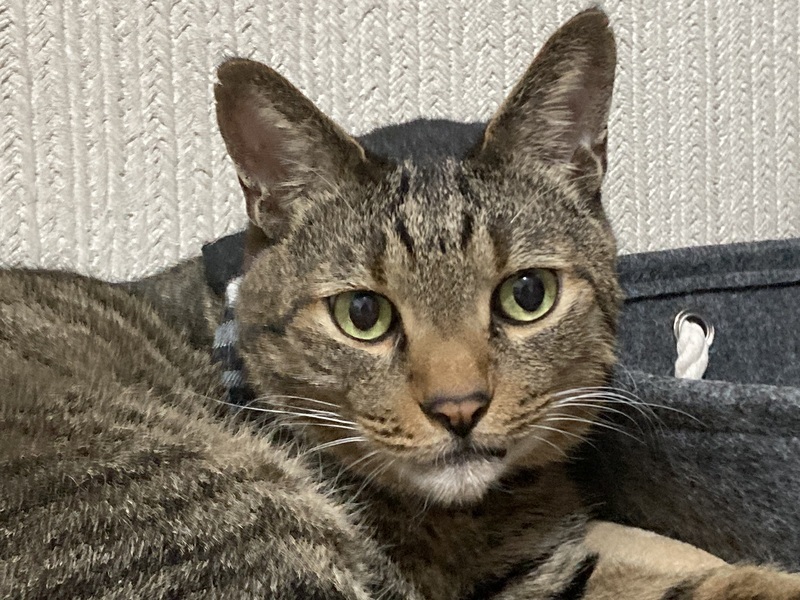 | 特徴(性格など) | 【外見】 尻尾が長く艶々綺麗なキジトラです。 体格はがっしり5.4kgです。 【性格】 *とにかくおっとりのんびりです *ふみふみモミモミしちゃう甘えっこさんです *猫は好きで毛繕いしてあげます *こちらの顔をじっと見つめてくれキュンとさせてくれます |