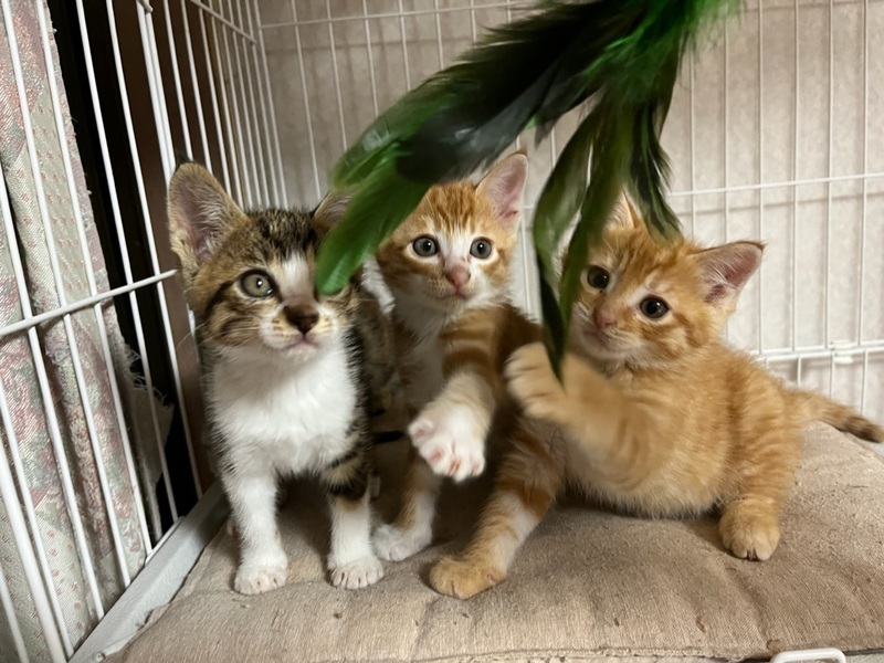 | 特徴(性格など) | 【見た目】 明るい茶トラで、しっぽは長くてまっすぐ。 少しだけ被毛が長めで、ほわほわしています。 兄弟もアメショ柄なので洋猫混じりだと思います。 お目目真ん丸というよりは、切れ長の野性的な顔立ちです。 たくさん食べて肉がつけば、お顔が丸くなって、毛ももっとふわふわになって可愛くなりそうです。 今でも毛が柔らかく、ふわふわなので触っていて気持ちがいいです。 風邪の治療中で、顔周りには目やにや鼻水が固まったものがこびりついています。 少しずつふやかして取っている最中です。 【性格】 兄弟の中で一番のおっとりちゃんで人懐こい子です。 保護した当日にはゆっくりまばたき(敵意はないという合図)をしてくれ、次の日には尻尾を立ててゴロゴロ甘えてくれました。 指にもじゃれてくれるようになり、ケージから出せー!みーみー!とアピールします(笑) 新しいおうちでもすぐに馴染めると思います。 1匹でも大丈夫ですが、兄弟猫と遊ぶのも大好きなので、2匹でもらっていただけるのが理想です。 その場合は怖がりな子とセットだと、支えあえるのでお家にも人にも慣れやすいと思います。 【健康状態】 栄養が足りていなかったのか、まだ痩せています。 今は頑張ってたくさん食べて、ふっくら健康を目指している最中です。 猫エイズ・白血病検査については、まだ月齢が幼く、負担が大きいこと&正確な結果が出ないため未検査です。 |