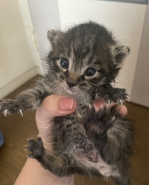 | 特徴(性格など) | 性格未だ分かりません。 キジトラ柄の背中がグレーです。 多分女の子です。 |