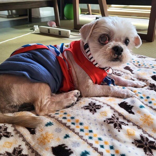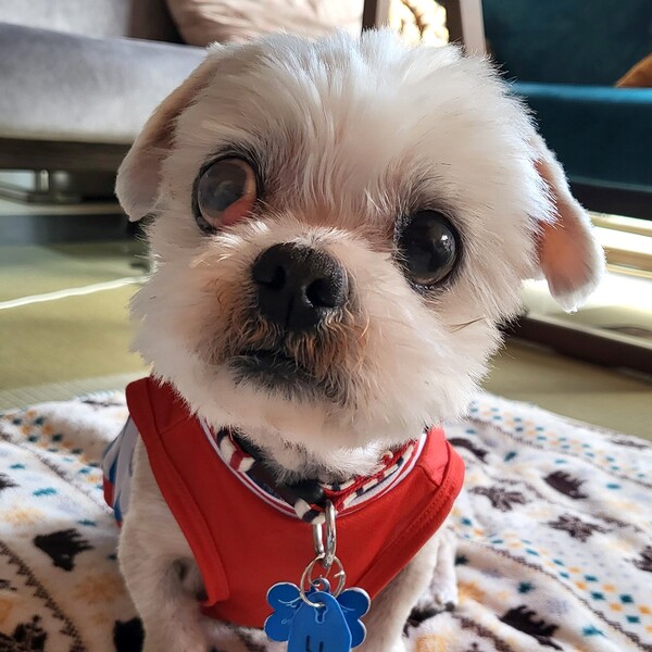 | 特徴(性格など) | ●性格 おっとりしていますが、歳のわりによく動きます。 同じ部屋にいれば大人しいですが、寂しがり屋で姿が見えなくなると吠えます。 ●治療経緯・健康状態: ・7種混合ワクチン・・・2023/3/27 ・狂犬病予防接種・・・2023/4/10 ・避妊・去勢手術・・・2023/3/28 ・マイクロチップ装着・・・あり ・フィラリア・・・陰性 投薬で健康上の問題が生じない限りは全頭に行っています。 ・その他健康状態・・・ 右目がチェリーアイになっていますので点眼を行っています。 ・右目は見えていません。左目は少し見えているようで、生活のサポートをお願いします。 家の中の配置に慣れると生活に支障はありません。 ・皮膚の肥厚と色素沈着が見られ痒がるため、定期的なシャンプーが必要です。 ・後肢が弱くなっていますが、お散歩は好きで良く歩きますので、筋力が落ちないようコタローのペースで お散歩をお願いします。 ・耳も遠いと思われます。 ・体重・・・4.7kg(適正5.2Kg) ●毎日の生活について ・トイレトレーニング:外に出るとすぐに済ませます。室内ではトイレシートの認識はないようです。 ・サークル/クレート:サークル、クレートは苦手で吠えます。しばらくすると諦めることもありますが 長い時間吠えます。 ・留守番や就寝時:就寝時は同室であればフリーで大人しく寝ています。 留守番時は、安全を考慮し、サークルに入れていますが長時間吠えます。 ・車移動・公共交通機関移動に関して:クレート・ドライビングボックスからは出ようとします。 電車移動は不明です。 ・お手入れに関して:シャンプー、ドライヤー、ブラッシングは大人しくできます。 ●里親様にお願いしたいこと 現在は、お留守番が苦手です。今後、変化する可能性はありますが、今の様子では お留守番の少ないご家庭が好ましいです。 ●預かり日記 ・天使たちの預かり日記 (https://ameblo.jp/yuukorinnnoburogu/ |