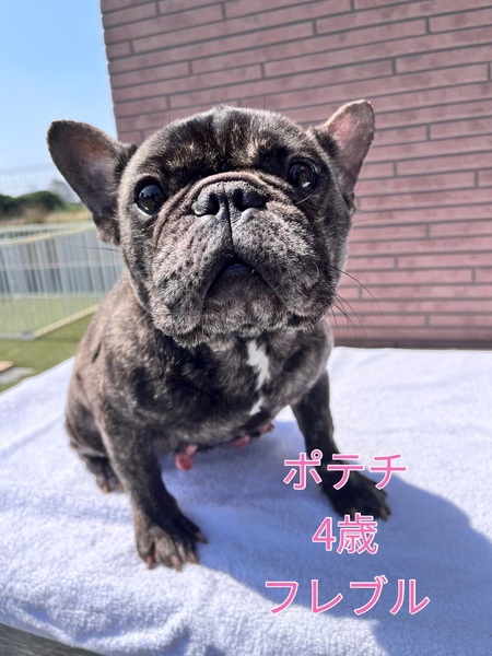 | 特徴(性格など) | ブリンドルの女の子。 最初は緊張した様子も見せますが、すぐに懐いてくれる子です。 基本、他のわんちゃんとも仲良くできます。 ケージでのお留守番もお利口さんにできます。 |
