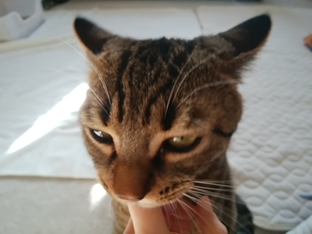 | 特徴(性格など) | 元気いっぱいです。子猫の頃は吐きやすい体質だったため、フードはナウフレッシュ フィッシュ アダルトキャットに固定しています(月に8000円くらいかかります)。日に小さじ1までは自然素材のフリーズドライのオヤツも食べられます。 暑さも寒さも苦手です。真夏はエアコン28度、冬は人間用の湯たんぽを24時間、布団の中に入れていました。 以下の工夫で吐かずに安定しています。 ・食器は高さのある物 ・フードはナウフレッシュ フィッシュ アダルトキャット。それ以外の物を食べると吐きます。 ・1日90gくらいをタッパーで量り、5回くらいに分けて与えています。さらに早食い防止のため大さじ1くらいの量をお皿に乗せて、食べ終わるとまた大さじ1を追加、という風に食べたら大さじ1ずつ追加しています。 もっと欲しがる日は、1日くらいなら給与量を少し超えても大丈夫ですが、食べ過ぎると太るし吐いてしまうので、お皿に乗せる量を減らして、回数を増やします。 体質なので、もし吐いても怒らない方。猫は吐くのが普通とご存じの方。 小分けに与えられる方。もしくは、5g以下の単位で1日20回以上給餌できる自動給餌器(2万円くらいします)を用意してくださる方。 吐かないように調整できる方を希望します。 トイレきちんとできます。 目がパチッとして、肩のあたりは少しだけ変わった縞で、可愛いです。 尻尾はまっすぐですが、触ると一番先が曲がっています。毛色は黄みがかっています。 慣れた人にはグルグル言いながら膝に乗り、人の指をおしゃぶりします。 段ボール製爪とぎを愛用していて、今のところ家具ではしません。カーペットやベッドサイドの布部分を引っかけたりはします。 植物の葉は中毒を起こすものでも何でも噛んでしまうため観葉植物は置けません。 ベンガルの血が入っているようで、ベンガルの特徴があります。 ・子猫時代は後ろ脚が長くスラっとしていました ・よくニャーニャーと話をしてくれます ・毛は手触り良く、抜け毛は少ないです ・運動量は多いので、高いタワーや走ってもよいスペースが必要です。閉じ込められるとストレスなのでワンルーム等は不可です ・活発で賢いので網戸などは開けてしまうので、のぼれんニャン等の対策が必要です。他の猫が開けられない重い引き戸も開けました。 ・誤食するため、留守番や寝る部屋には細かいものは置いていません。コンセントは出来るだけ使わず、コードにはカバーをしています ・野生種の血を継ぎ、狩猟本能が残っています。テンションが上がったときは、人の手足を獲物に見立て甘噛みしてきます(人が怪我をするほどではありませんが、痛いです)。おもちゃやオヤツで気をそらしたりしています。退屈すると遊びで人の手足を狙ってくるので、飽きないよう、数百円の動くおもちゃを、誤食に気を付けながら、遊んでいます。ベンガルは飼い主と遊ばないとストレスになるそうなので、1日トータルで1時間以上遊べる方。 興奮して人が怪我をしそうな時は、フリーズドライの煮干しなどのおやつをあげて部屋からそっと立ち去ります。 ・お腹がすいた時や遊びたいときも甘嚙みしてきます。犬っぽい猫です。 ・ゴロゴロいいながら幸せな時にも嬉しすぎて甘噛みします。 ・ベンガル特有の病気もあるようなので年を取ればそのような病気が出てくる可能性もゼロではありません。 ・ベンガルは水を怖がらないそうなので、お風呂は蓋を必ず閉めるなど水回りの事故にも気を付けてください。 そのような特徴を理解し受け入れた上で、何でも禁止ではなくこの子の本来の姿を受け入れて、一生一緒に過ごしてくれる里親さんを探しています。 |