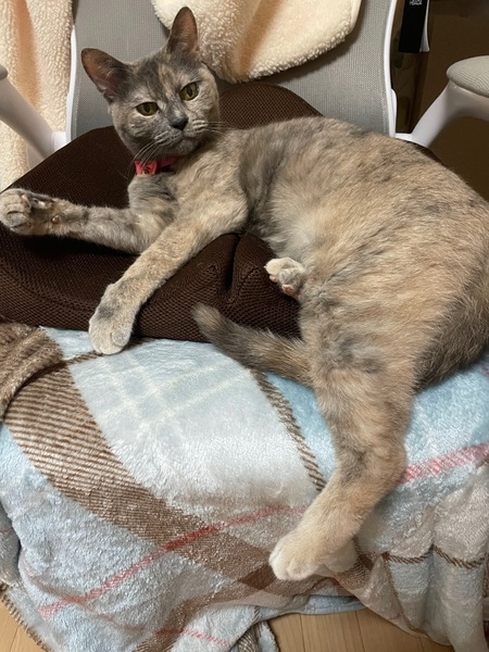 | 特徴(性格など) | ロシアンブルーと雑種ののミックスです。 生後1週間で捨てられていたところを両親が拾って幼い時から家族で飼っていた大事な子です。 捨てられた経験があるので、最初は人間に警戒心を持っていたのですが、今ではすっかり甘えん坊さんです。 抱っこされたりするのは嫌がりますが、甘えに来たい時だけ甘えにくる気分屋さんです。 最近は年もとってきているので寝ていることが多いです。 |