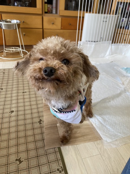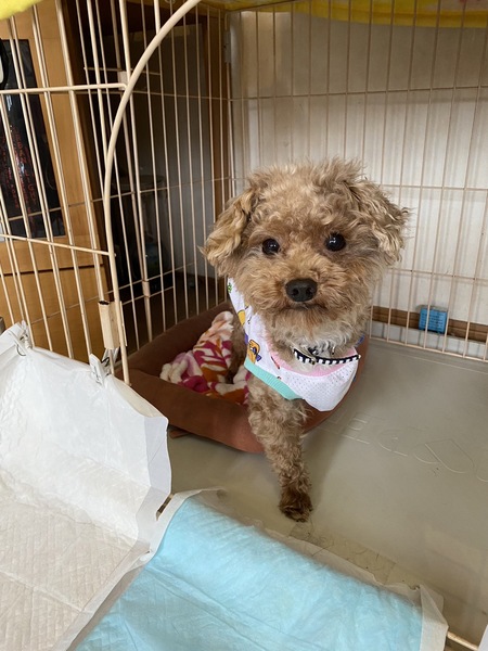 | 特徴(性格など) | 【プロフィール】 名前:みお 犬種:チワプー 体重:2.7Kg トイレ:△(練習中!) ご飯:◎ 抱っこ:◎ おやつ:◎ 犬:◎ 人:◎ 人が大好き、抱っこ大好き!な甘えん坊で可愛い男の子です。 飼い主命!の健気な様子が愛らしく、常に一緒に居たくてどこにでも付いてきます。 左前脚が膝からありませんが何不自由なく生活しています。 犬とも問題なく生活できる子です。 【医療】 フィラリア:(−) 便検査 :(−) 血液検査:済 去勢手術:済 ワクチン接種:済 マイクロチップ:済 フロントライン(毎月) 血液検査で特に問題はなく、いたって健康です。 生まれつき左前脚が膝からありませんが、健康面でも生活面で問題ありません。 |