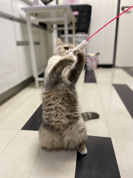 | 特徴(性格など) | 親猫はチンチラ(雄)とマンチカン(雌)のミヌエットです。どちらかと言うとマンチカンの血が濃い見たいです。血統書はありません。シルバー系の毛色です。 性格はイタズラっ娘、ツンデレ、良く食べる、かまってちゃん、生まれてから今まで病気などは一切ありません。 ご飯はドライフードのみで育ってます。 ちなみに体重は3.4k |