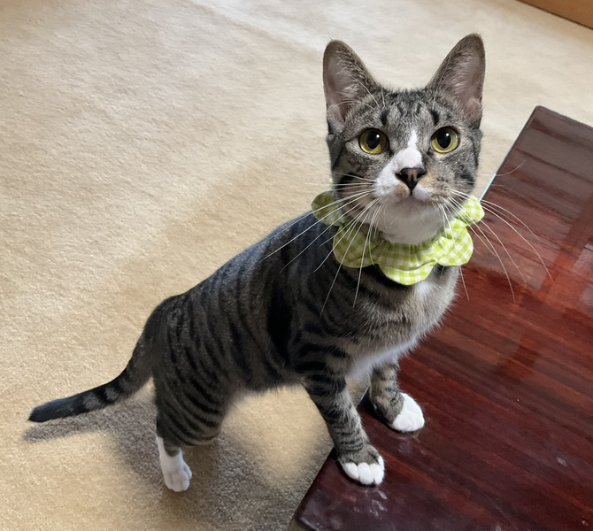 | 特徴(性格など) | ぱっちり大きな、緑がかったゴールドの瞳が印象的な美猫です。 目力が強めで、機嫌の良し悪しがはっきりお顔に現れます 笑 体型は小顔でスレンダー、体重は3kg台で 写真や動画で見るより小柄です。 預かり当初 人馴れしていませんでしたが、根気よくふれあい訓練を繰り返し、2ヶ月半を過ぎた頃から急速に人馴れが進みました。 ツンデレで、甘えたい時は撫でられるとうっとりしますが、気分じゃない時はサッと逃げたり、軽くパンチして“やめて”といいます。 ON OFFがはっきりしていますが、甘えたいモードの時の気持ちがまだ上手に表現できず、のじのじと身をくねらせ悶えている様子は、とても愛らしく微笑ましいです。 普段はハスキーボイスですが、感極まるとキャッキャッと高い声で可愛らしく鳴きます♪ また、好奇心旺盛で頭が良く、人や先住犬猫の動きをじっと観察して預かり宅の日課を理解し、それに合わせようとする行動(ケージに戻るタイミングがわかる、など)がみられます。 多頭飼育の出身らしく猫が好きで、預かり宅の先住猫によく懐いていますので、相性はあるかと思いますが、先住さんの弟分として 2匹目、3匹目にもぴったりです。 預かり宅の犬にも積極的に近寄っていき、頭突きなどの挨拶をしますので、猫に優しくすることができる犬とでしたら友達になれると思います。 人との距離がある状態で育った子ですから、なずなの生育環境を理解し、なずなのペースに合わせ、人馴れしていく過程をゆったり楽しんで下さる方になずなを託したいと考えております。 なずなはまだまだ家猫修行中で、日々目まぐるしく成長しています。 なずなが人馴れしていく過程を、インスタグラムに毎日アップしています。 なずなの性格や日々の様子が垣間みえますので、是非ご覧下さいませ。 ↓↓↓ http://instagram.com/kemikemi1206 |