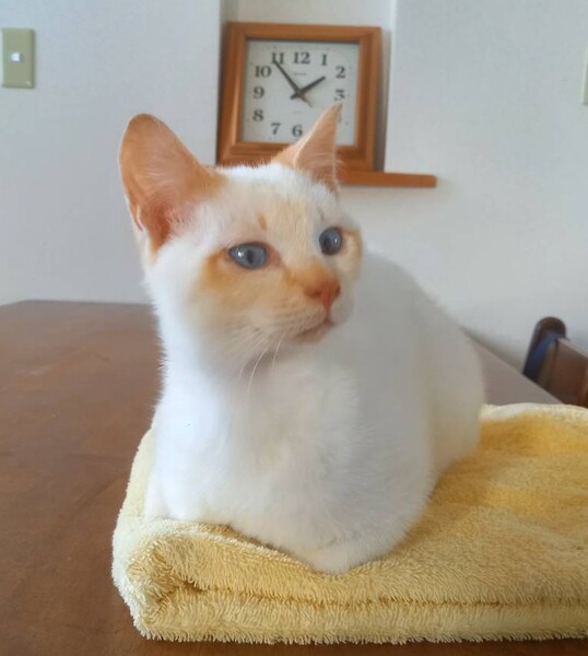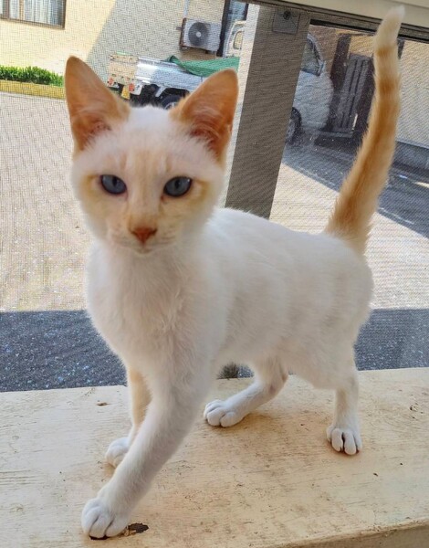 | 特徴(性格など) | ポインテッド(シャムMIX)レッドポイント(白茶)の男の子です。 推定生後半年ほどかと思います。 人にとっても懐いていて、甘えん坊で、抱っこが大好きな子です。 後ろからずっとついてきて、スリスリ&ゴロゴロしてきます。 |