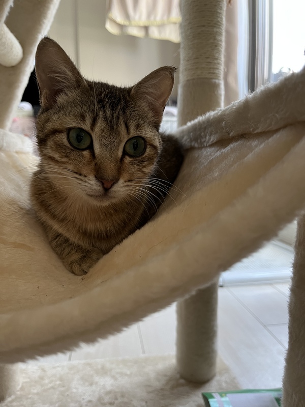 | 特徴(性格など) | キジトラ 甘えん坊、割とおとなしく小柄です。 他の猫問題なし、なつっこいです。 事故でセンターに収容されました。 左後ろ足骨折で断脚しました。 普通の子猫と変わりません。 走り回ってます。 その際に妊娠しており、2匹の赤ちゃんがお腹に居ましたが、堕胎してます。 |