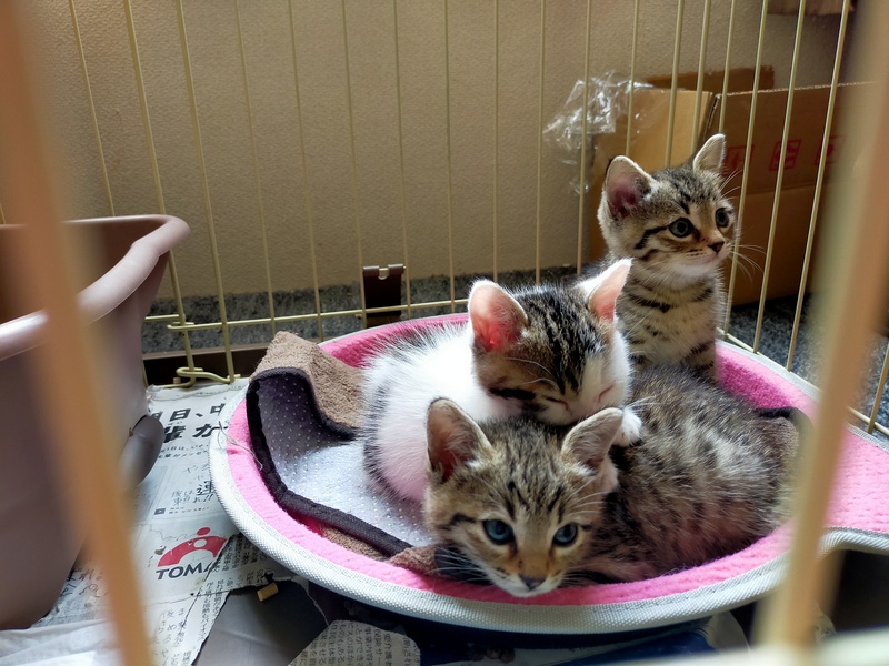 | 里親募集する理由 | 10日ほど前に知人のアパートの前にダンボール箱に入れられて5匹の猫が捨てられていたそうです。うち2匹は貰われていきましたが、既に先住猫が居るため残り3匹のお世話は仕事で不在がちなのと経済的に困難なため、 見かねて私が一匹預かり、里親様を募集する事となりました。 私自身も持病があり将来的に手術や入院の可能性があるので長くは面倒が見られません。今回一時預かりの間に良い里親様とのご縁があればと思い、募集させていただきます。 |