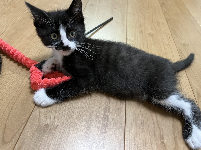 | 特徴(性格など) | 【仮名】天 【生年月日】2023年4月上旬頃生まれ 【種類】MIX 【毛色】ブラック&ホワイト 【性別】オス 【去勢】未 適齢になり次第飼い主様で必ずお願いします。 【ワクチン】済 【駆虫】済 【健康状態】良好 【性格】ゴロゴロいいながら近づいてくる甘えん坊です。 ケージから可愛い声で遊んでと近寄ってきます。 トイレも失敗なくちゃんと出来ています。 【その他】 兄弟 楽♂ |