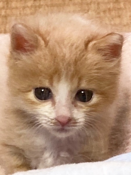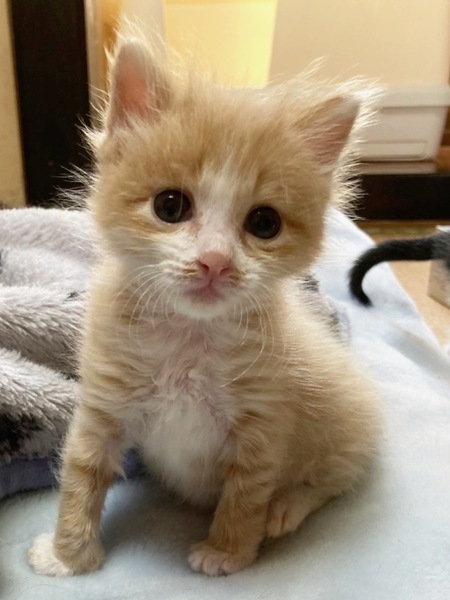 | 里親募集する理由 | まだ臍の緒がついたままの状態で紙袋に入っていたそうです。公園を犬のお散歩していた方がたまたま見つけて、ボランティアさんに情報が入ったため、早めに保護できました。4兄妹で保護されましたが、残念ながら1頭は二日後に虹の橋を渡ってしまいました。ママ猫さんの初乳も飲んでいなかったみたいで、風邪を繰り返していましたが、なんとか成長し、命の危険がなくなってきました。保護猫さんに理解のある方が多い東京近郊で募集をします。現在は連携しているボランティアさん宅(福岡県北九州市)で保護療養しております。ドライフードが食べられるようになったらこちらに来る予定です。面会は東京都港区になります。 | ||