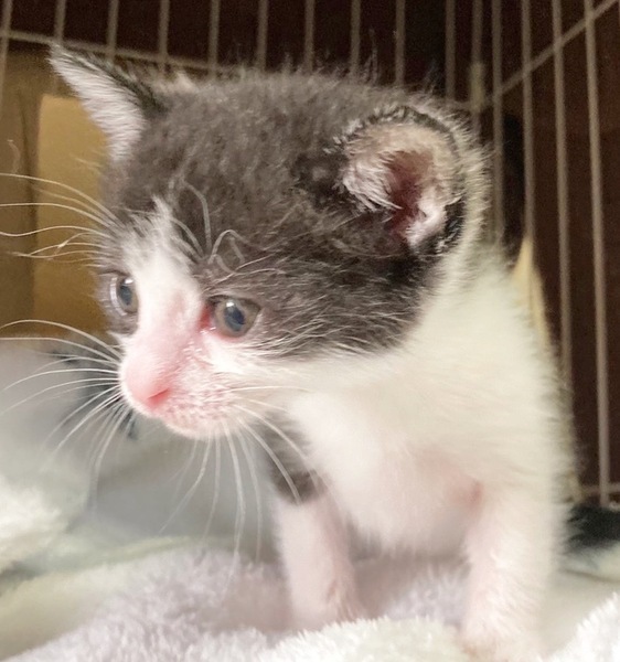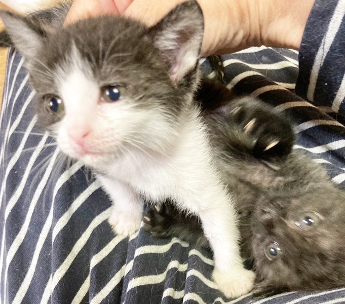 | 特徴(性格など) | ✳︎特徴 ハチワレ柄の女の子なのですが、黒毛の部分が濃グレーになっています。背中はちょっとグラデっぽい感じです。 定番の可愛いアイテムにはなりますが、おめめがくりくりで、ピンクのお鼻と肉球が鉄板のかわいさでです。 尻尾はほぼ真っ直ぐですが先端が少しだけ曲がっています。 ✳︎性格 グラちゃん(仮名)保護されてすぐに風邪を引いてミルクの飲みが悪くなり、通院が続きましたがお利口さんでした。 回復してからは兄妹たちと元気に仲良く遊んでいます。保護主さんともすっかり仲良くなりお膝の上も大好きです。 これから4ヶ月くらいまでの間は、子猫さんの社会性が育つ時期になります。取っ組み合いの喧嘩をしながら、甘噛みを覚えたり、追いかけっこしながら、動体視力を養っていきます。 できれば、2頭一緒に迎えてくださるお宅や、一緒に遊べる若い先住猫さんがいるお宅、お留守番があまり長くなく猫さんと一緒に遊ぶ時間が十分取れるお宅を優先させていただきたいと考えております。 ✳︎健康状態 保護時はなかなか体温が上がらず衰弱していましたが、現在は良好でミルクもよく飲んでいます。 4月16日生まれです。血液検査の結果は陰性で、5月29日の段階で650gです。 |