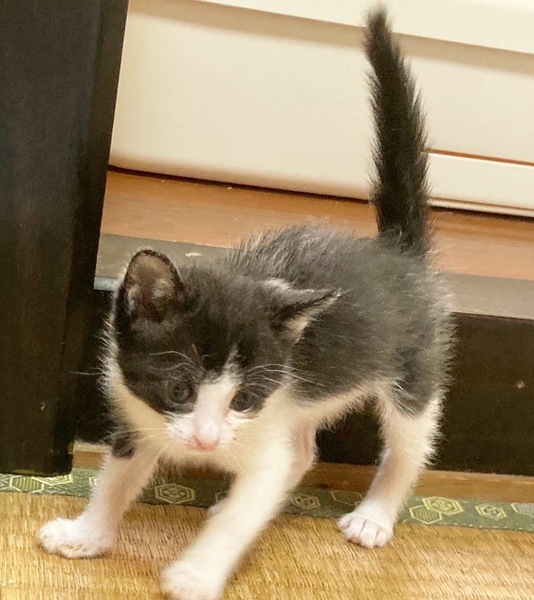 | 里親募集する理由 | まだ臍の緒がついたままの状態で紙袋に入っていたそうです。公園を犬のお散歩していた方がたまたま見つけて、ボランティアさんに情報が入ったため、早めに保護できました。4兄妹で保護されましたが、残念ながら1頭は二日後に虹の橋を渡ってしまいました。ママ猫さんの初乳も飲んでいなかったみたいで、風邪を繰り返していましたが、なんとか成長し、命の危険がなくなってきました。保護猫さんに理解のある方が多い東京近郊で募集をします。現在は連携しているボランティアさん宅(福岡県北九州市)で保護療養しております。ドライフードが食べられるようになったらこちらに来る予定です。面会は東京都港区になります。 | ||