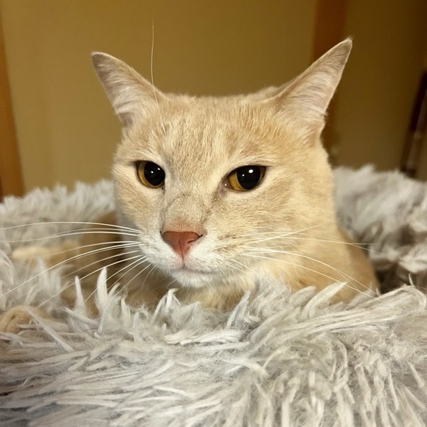 | 特徴(性格など) | とても綺麗なクリーム色の毛並みでお顔もなかなかのイケメンです! ミルクくんは子猫の頃にママ猫と一緒に飢えていたせいか、賢いママからの伝授もありとっても怖がりさんの子猫でした。 子猫がいるときには年下の猫さんの遊び相手になって遊んでいたので、年下の面倒見は良さそうです。大人の猫さんとも上手く付き合おうとするタイプですが、身体が大きいからか?我が家には受け入れようとしない猫さんもいます。人に対しては怖がりな部分がありますが、譲渡会に出る度一皮剥けて良い子になっているような気がします。すこーしだけ抱っこもできるようになり、この前は初ゴロゴロを頂きました♡ 本質は『本当は甘えたい盛りの男の子』というイメージです。主張もしてくるので、ミルクくんにもっと愛情を注げる環境があればどんどん良い子になれるはず。時間をかけて慣らした子なので、里親さんの元でもゆっくり慣れていく感じになると思います。まだまだ怖がりな部分もあるので、ミルクくんひとりをじっくり見守ってくださる方との出会いがあると嬉しいです。 |