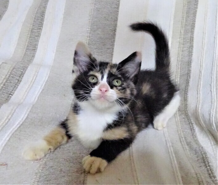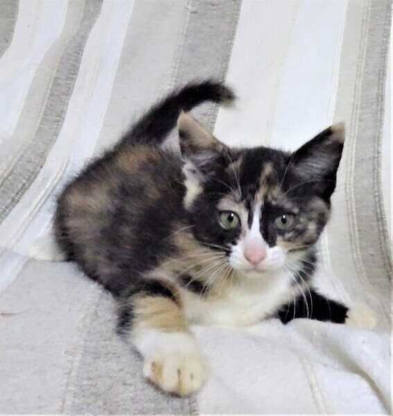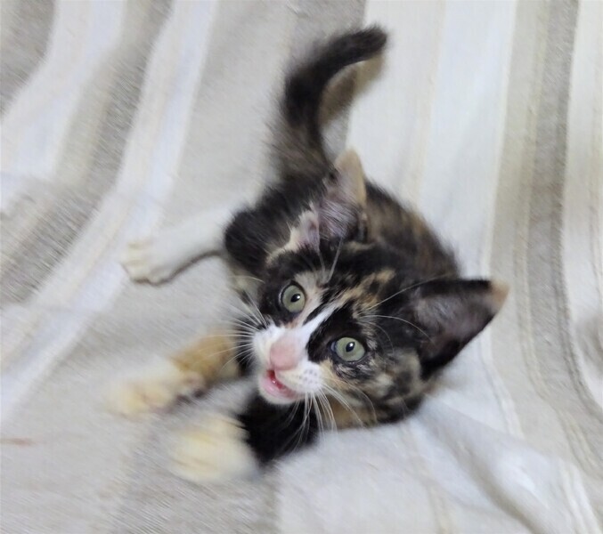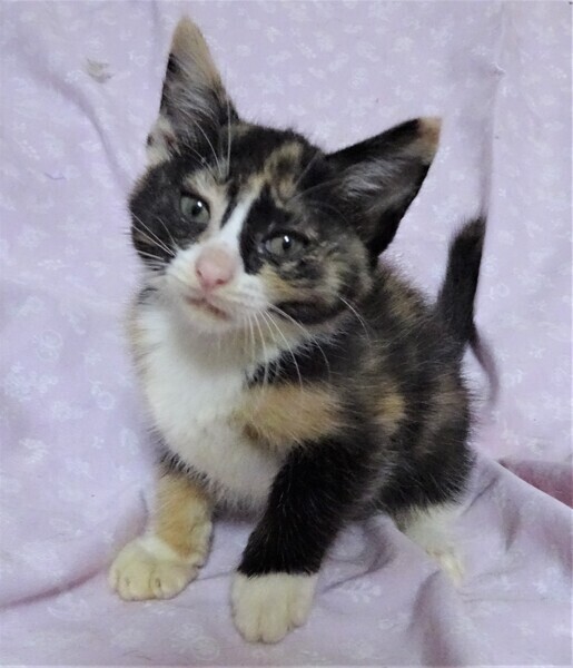 | 特徴(性格など) | 仮名: 藤花(とうか)ちゃん、メス 毛色: 三毛猫 性格: まだ小さいので個性ははっきりとしませんが、威嚇なく抱っこ出来、爪切り、薬も大丈夫です。 人と遊ぶのも好きです。 今は兄弟一緒に良く遊んでいます。 活発ですが、まだ大きなじゃらしなどは少し怖いようです。 大人猫もちょっと怖いみたいです。 女の子ですから、気の強い面もあり、プロレスで怒ったりしています。。 兄弟の(仁くん)と一緒のご縁があると良いです。 検便済 駆虫済 3種混合ワクチン済 猫エイズ・白血病ウィルス検査はともに陰性 |