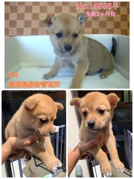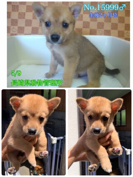 | 特徴(性格など) | 〜5/29追記〜 2匹は里親様決まりました! あと2匹、 ★No.15996 女の子 ★No.15999 男の子 ですฅ•ﻌ•ฅ ♡まだ生後2ヶ月位のよちよち歩き 野良ちゃんが生んだとっても可愛い雑種の子犬きょうだいですฅ•ﻌ•ฅ 突然親犬と離れ離れになり連れて来られて収容され、どんなに寂しく心細いか。 一日も早く温かい家庭の中で過ごさせてあげたいです。 ⭐️ 外飼いでは無く、室内飼育で家族の一員として迎えて下さる方、「引き渡し方法」のところにあります【①〜のアンケート】にご回答と、No.どの子をご希望か、と共に、お問い合わせを頂けますようお願い申し上げます♡ ★No.15996 女の子 ★No.15999 男の子 優しい職員さん方が大丈夫だよ、幸せになれます様にと毎日触れ合い、声掛けしながら一生懸命にお世話してくださっています(^^) 無理もありませんが収容当初は怯えていました。今は尻尾フリフリ人懐こく喜んで寄って来て足元にじゃれついてきます。 ワチャワチャしていて仔犬らしさ全開(^^) 愛嬌たっぷりラブリーの甘えん坊さんワンコ達です♡ 栄養不良に不衛生な環境からの保護・収容でノミダニがついていました(><) 痩せていて毛並み毛艶も悪く栄養状態や健康状態がいいとは言い切れません。 体調も急変しやすいかと思われます(>_<) 何か病気や障害が有るのか、無いのか?も分かりません。 今後、体調の急変などもあり得ることを念頭に置き、譲渡後は早急な病院受診が可能なご家庭を希望しておりますm(_ _)m 現在は1日に3回、ご寄付で送って頂いた栄養価の高い良質な仔犬用のドライフード(ネイティブドッグフードパピー)をミルクでふやかして食べています。 まだまだ幼い為、長時間のお留守番は出来ません。特に子犬は不安や寂しさから夜鳴きする子が多いです。 ♡今後の健康な成長の為に引き続き良質な成分のフードを与える事が可能な方、 そして大事な社会化期でこれから甘噛みやトイレの躾など、本当に本当に!何かと手がかかりますが育てる自信と覚悟のある方、 出来れば中型〜大型犬の飼育経験のある方が望ましいです♡ ※子犬は思っていた以上にお世話が大変だと言われる方が多く、排泄も頻回で甘噛み期もあります。カミカミされると痛いです! ご苦労もかなり多いと思います。 日に日に大きくなっていきますし換毛期は抜け毛もわんさか、日々のブラッシングやら爪切りも必要です(^^) 本当に大変ですがm(_ _)m! 充分ご理解頂ける方m(_ _)m ♡まだお散歩デビューは出来ませんが、今後成長していく中で、急な物音や知らない場所にビックリして怖がって、咄嗟に逃げよう、逃げようとする可能性も大いにあり得る事です。 その時の力、引きの強さも想定し、急な走り出しや高い塀や壁・柵の飛び越え・急な方向転換や首を振って後退りからの首輪抜け、胴輪抜けにはご用心です! 呼び戻しも教えなければなりませんし、パニックになったワンちゃんには呼び戻しもききません、もし逃がしてしまったらピューっと走って逃げて行ってしまう可能性大です!(>_<) もし逃がしたらもう捕まえられない!!というようにお考えくださいm(_ _)m ※繰り返しになりますがどんな子であっても、慣れてきても、常に、脱走・逃走には充分な注意と最大限の配慮(W首輪、胴輪にWリード)と迷子札装着をお願いしております m(_ _)m 適切に制御し、躾や毎日朝晩のお散歩、運動の時間をしっかり取ることの出来る、沢山優しく触れ合って頂ける方、先ずはじっくりと時間を費やし触れ合い、信頼関係を作っていく事の出来るご家庭を希望しております。 ♡人間が焦らずにゆっくり見守りながら、愛情を持って接ししっかりとお散歩にも連れ出して行けば、この子達はきっと新しい家庭に馴染んでいける、優しい家族に囲まれて思い切り甘えて遊んでほしいのだと思います。 当分の間はかなり手がかかり大変かと思いますがまだ子犬ですし、広い心で、例え長期戦でもドンとこい^_^と仰って頂ける方、 愛くるしいこの子達を尻尾フリフリ♫ニコニコの笑顔にしてくださる方、いらっしゃいませんか? どうぞ宜しくお願い申し上げますm(_ _)m ⭐️必ず室内飼育で、譲渡後速やかに病院受診、健康診断、2回目3回目の混合ワクチン、生後4〜6ヶ月頃を目処に不妊手術をする事が可能なご家庭。 ⭐️まだまだ幼い為長時間のお留守番は出来ません。なるべくお留守番の少ない(4時間以内)沢山優しくスキンシップやコミュニケーションで触れ合っていただけるご家庭。 ストレスが溜まらぬよう、成長後の運動量もしっかり確保出来るご家庭m(_ _)m ⭐️トイレの躾は1からとなります。 まだ子犬なので躾は入りやすいと思われます。現在ペットシートでトイレの練習中(^^) 最初は何かと手がかかり大変ですが(広めのトイレスペースやペットシート、マナーベルト、新聞紙を用意など)覚悟と根気・理解で受け入れて下さる方m(_ _)m ⭐️出来れば中型〜大型犬の飼育経験があり自信のある方、叩いたりせずに愛情を持って犬をしっかり躾