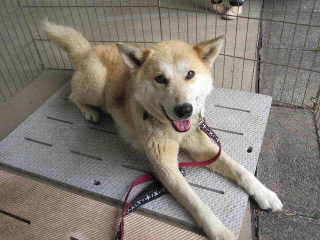| 特徴(性格など) | とにかく元気です。人懐っこく、飛びついてきます。若いので力も強く、犬を見ると急に引っ張ります。だから体力があり、しっかり躾けられる方にお願いしたいです。できればこんなトクでも室内飼いのできる方にお願いしたいです。 フィラリア陽性で、1年以上フィラリアの薬を投薬しています。 |
