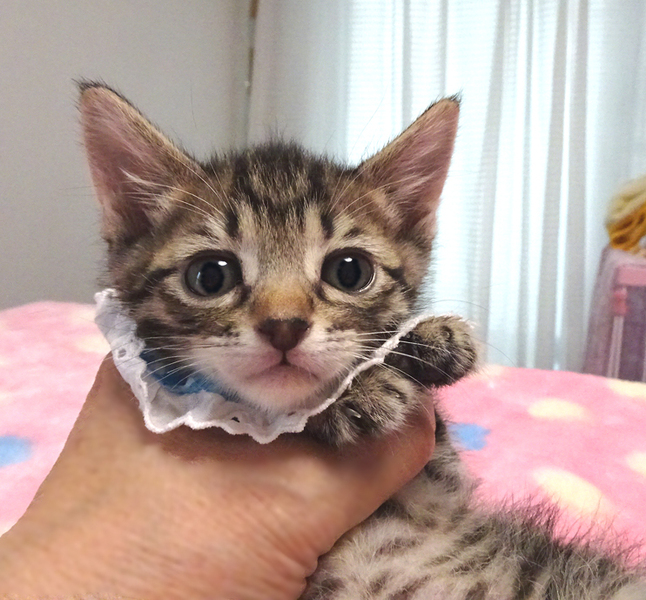 | 特徴(性格など) | 【猫の仮名】 優(ゆう)くん (担当 松嶋) 【毛色・柄】 キジトラ、うさぎシッポ 【動画】https://youtu.be/SSqTFPUElH0 小さくてもトイレができる賢い子です♪ 乳飲み子から育てたので大変人慣れしています♪ 猫を飼うのが初めての方でも大丈夫です♪ 健康状態良好 ●ウイルス検査(エイズ・白血病)兄弟の葵(あおい)くんで検査して陰性(里親様の希望により検査可) ●ワクチン 1回 ●蚤取り 1回 ●駆虫 2回 ●検便 2回 ●シャンプー 2回 走っても大丈夫なペット可のお住まいで、家族の一員として生涯大切にして下さるご家族を募集しています。 まだ小さいので猫だけのお留守番が長時間でないご家族を希望します。 ご高齢の方は後継者のおられる方を希望いたします。 |