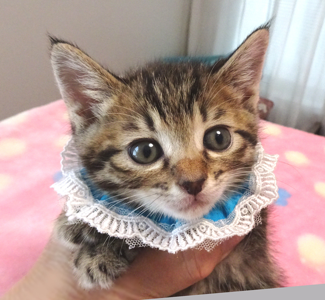 | 特徴(性格など) | 【猫の仮名】 翔(しょう)くん (担当 松嶋) 【毛色・柄】 キジトラ、長いシッポ 【動画】https://youtu.be/sE5QDAj4X3A 小さくてもトイレができる賢い子です♪ 乳飲み子から育てたので大変人慣れしています♪ 猫を飼うのが初めての方でも大丈夫です♪ 健康状態良好 ●ウイルス検査(エイズ・白血病)兄弟の葵(あおい)くんで検査して陰性(里親様のご希望により検査可) ●ワクチン 1回 ●蚤取り 1回 ●駆虫 2回 ●検便 2回 ●シャンプー 2回 走っても大丈夫なペット可のお住まいで、家族の一員として生涯大切にして下さるご家族を募集しています。 まだ小さいので猫だけのお留守番が長時間でないご家族を希望します。 ご高齢の方は後継者のおられる方を希望いたします。 |