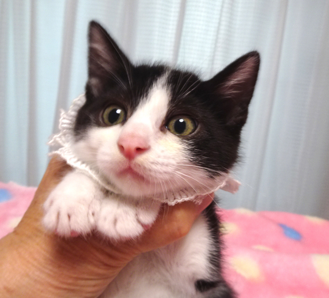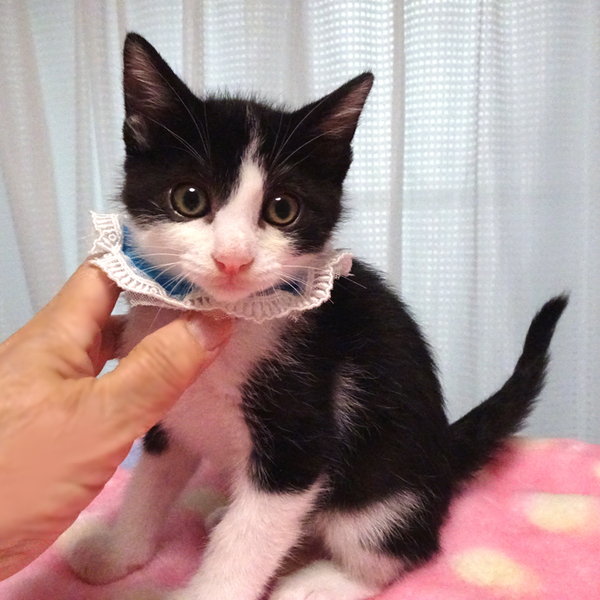 | 特徴(性格など) | 【猫の仮名】 ライトくん (担当 松嶋) 【毛色・柄】 黒白八割れ、長いシッポ 小さくてもトイレができる賢い子です♪ 乳飲み子から育てたので大変人慣れしています♪ 猫を飼うのが初めての方でも大丈夫です♪ 走っても大丈夫なペット可のお住まいで、家族の一員として生涯大切にして下さるご家族を募集しています。 まだ小さいので猫だけのお留守番が長時間でないご家族を希望します。 ご高齢の方は後継者のおられる方を希望いたします。 |