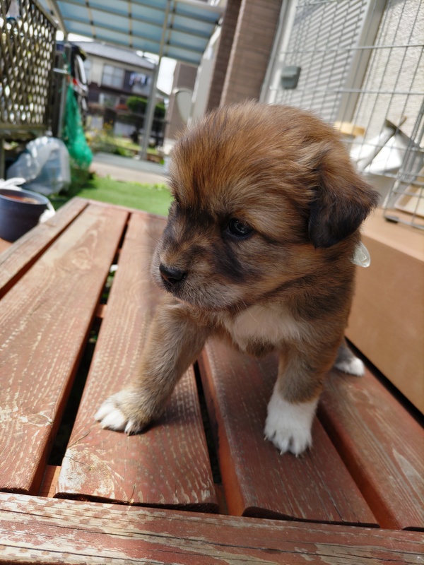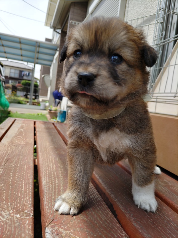 | 特徴(性格など) | こげ茶の男の子です。母犬の体格から成犬時は10~15Kgほどになると予想されます。野犬の子ですから初めは警戒があると思いますが、すぐに慣れて甘えてきます。肺雑音・心雑音ともなく健康です(ただし、現時点での健康状態であって、将来的な疾病については一切保証できません)。初期医療として虫下しとノミダニの駆虫薬投与後譲渡いたします。 | ||