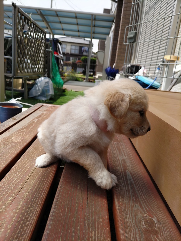 | 特徴(性格など) | クリーム色の女の子です。母犬の体格から成犬時は10~15Kgほどになると予想されます。野犬の子ですから初めは警戒があると思いますが、すぐに慣れて甘えてきます。肺雑音・心雑音ともなく健康です(ただし、現時点での健康状態であって、将来的な疾病については一切保証できません)。初期医療として虫下しとノミダニの駆虫薬投与後譲渡いたします。 |