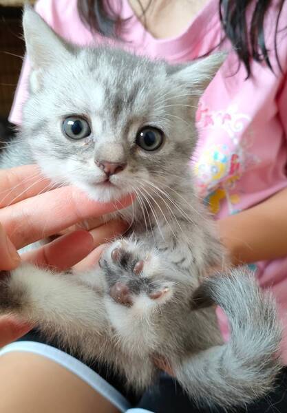 | 特徴(性格など) | 立ち耳なので見た目はシルバー系のアメリカンショートヘアみたいです。 3匹ともとても元気でお顔も丸くたぬき顔で可愛いです。 1枚目 かすてら♀ 2枚目 らくがん♀ 3枚目 ぜんざい♂ ※触るとわかる胸部の凹みがあります。 駆虫、ワクチン、健康診断等の最低限必要な医療は施術してからの譲渡です。 |