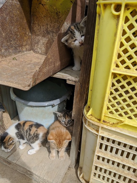 | 特徴(性格など) | 三毛猫2匹 茶トラ1匹 キジトラ1匹 性別不明 |