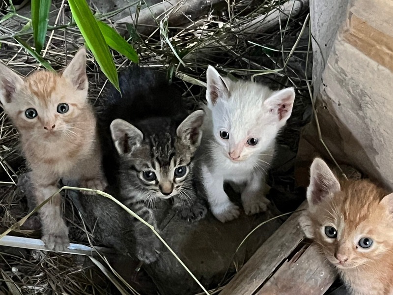 | 特徴(性格など) | 茶トラ3匹 白1匹 キジトラ2匹 母猫 三毛 そろそろ離乳期の様です 子猫同士でじゃれ合い、母猫の後をよちよち歩き出しました くりくりお目目で可愛い子達です |