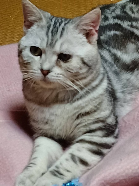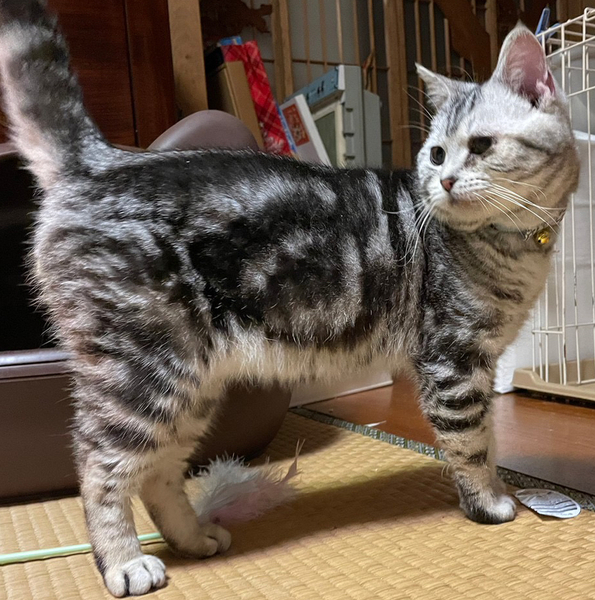 | 特徴(性格など) | ★アメリカンショートヘアー (シルバータビー) ★好奇心旺盛で元気な若い男の子 ★遊びが大好き ★猫同士は相性があります ★保護時、左目を痛めていたので治療しました |